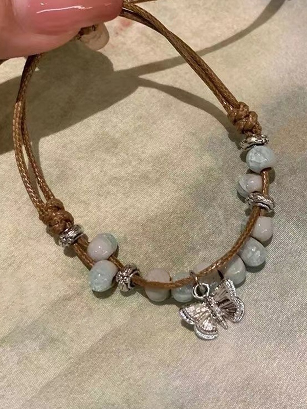 Vintage Butterfly Ceramic Beaded Braided Bracelet