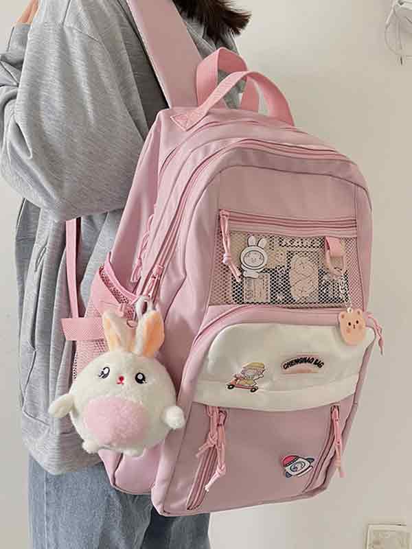 Color-Block Mesh Pocket Casual Backpack