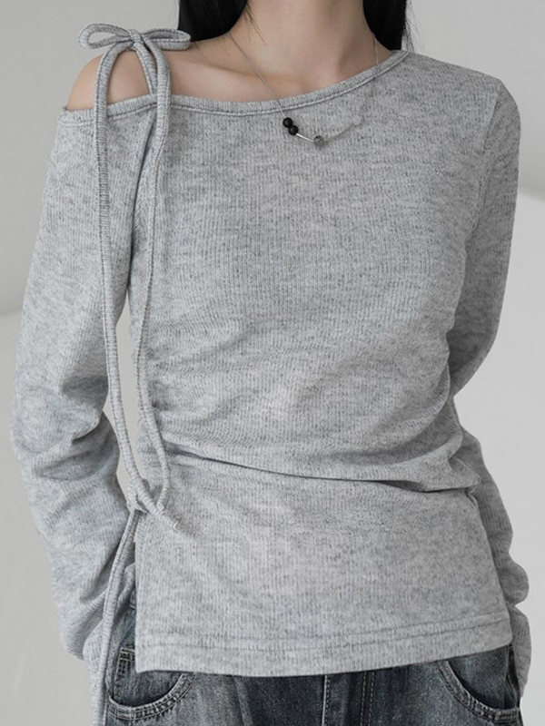Solid Tattered Off Shoulder Long Sleeve Knit