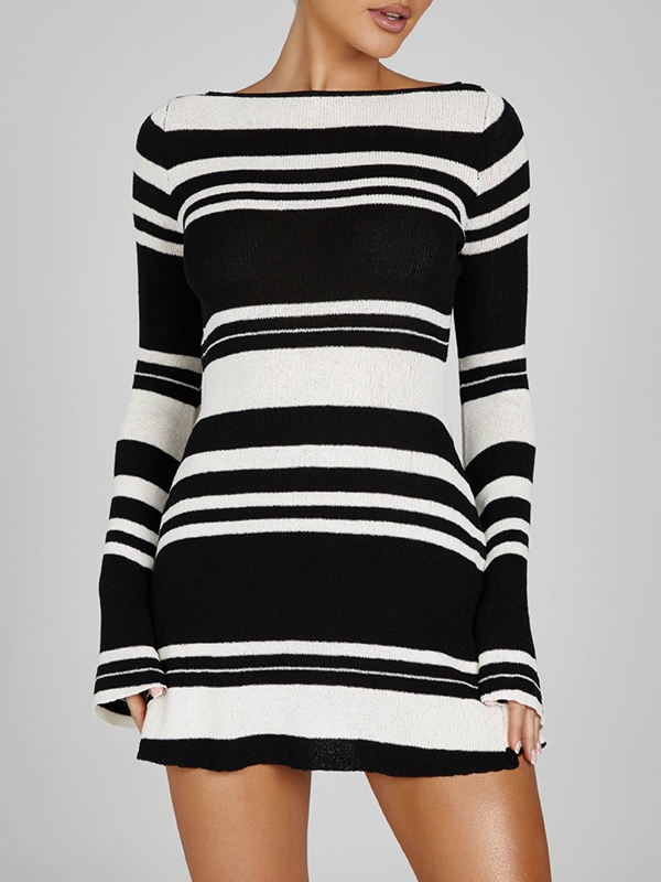 Stripe Splice Backless Knit Mini Dress