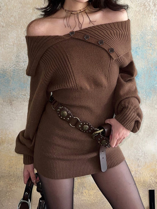 Off Shoulder Lapel Neck Knit Mini Dress