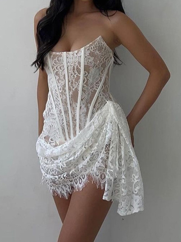 Lace Mesh Corset Bandeau Mini Dress