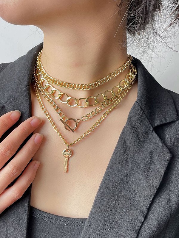 4pcs Punk Link Chain Necklace