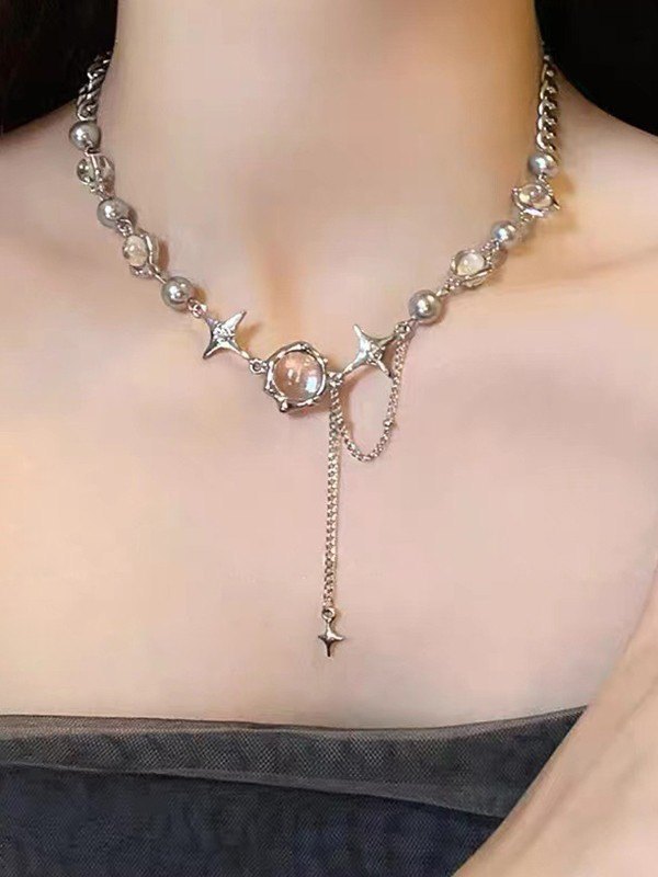 Rhinestone Star Beads Chain Necklace