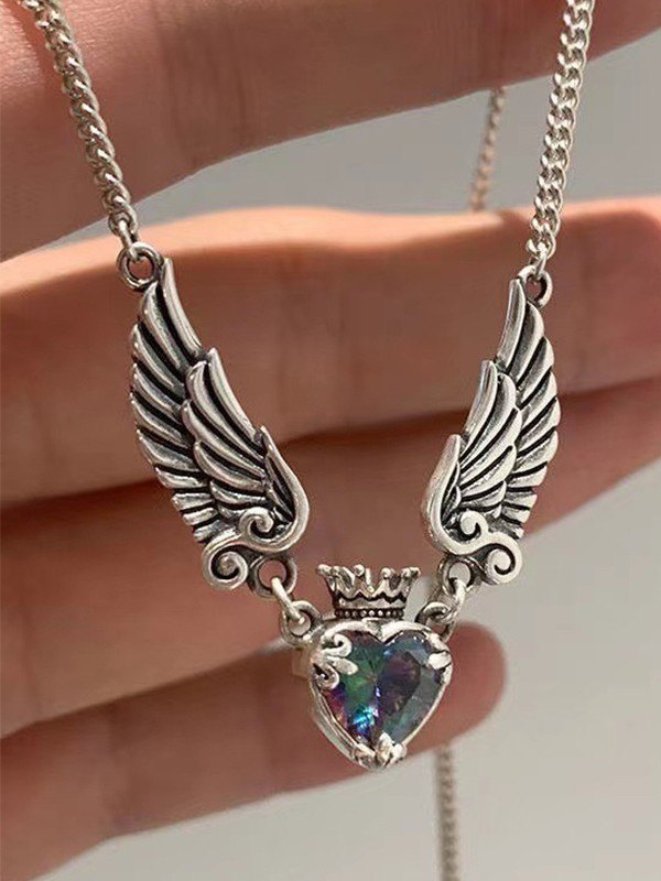 Winged Zircon Heart Pendant Necklace