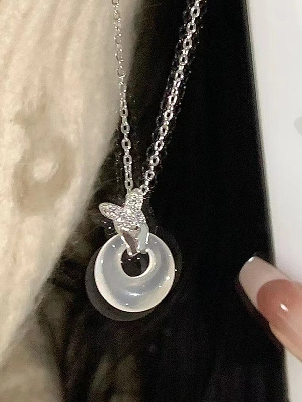 Silver Rhinestone Butterfly Charm Necklace