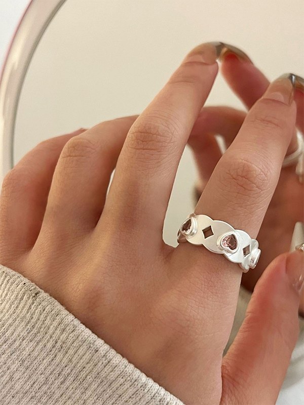 Rhinestone Heart Charm Cuff Ring