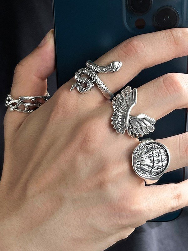 Men’s 4pcs Vintage Silver Ring Set