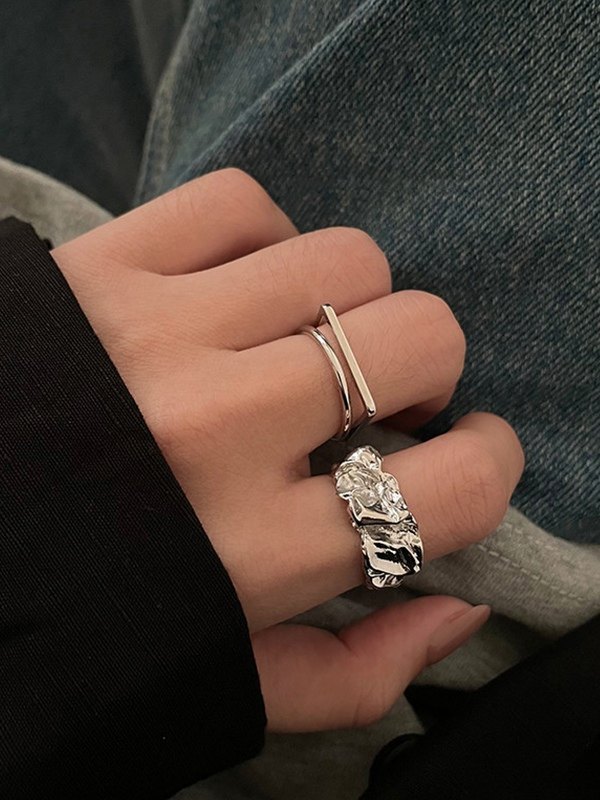 2pcs Irregular Silver Ring Set