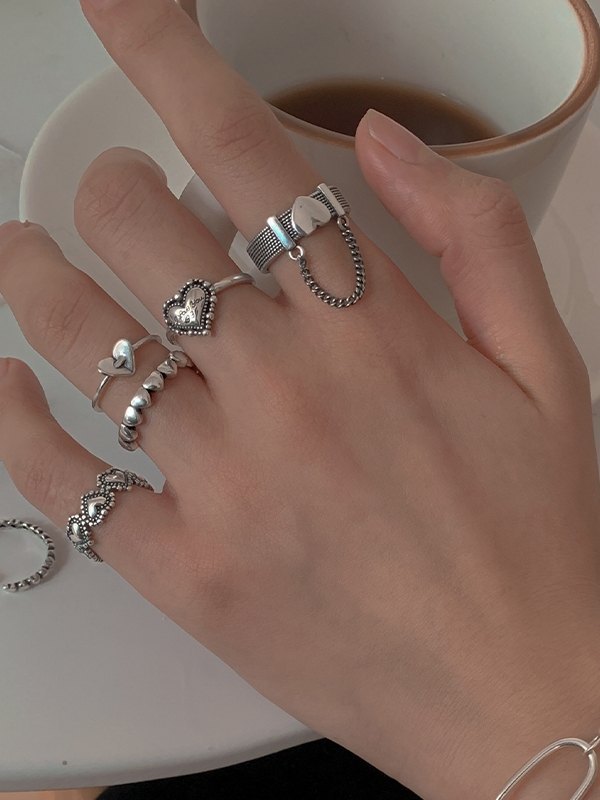 5pcs Heart Decor Silver Cuff Ring