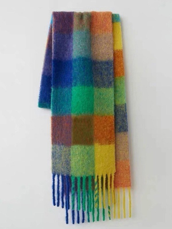 Rainbow Checker Fringed Oversized Scarf