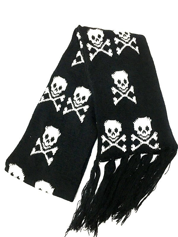 Skull Jacquard Fringed Knitted Scarf