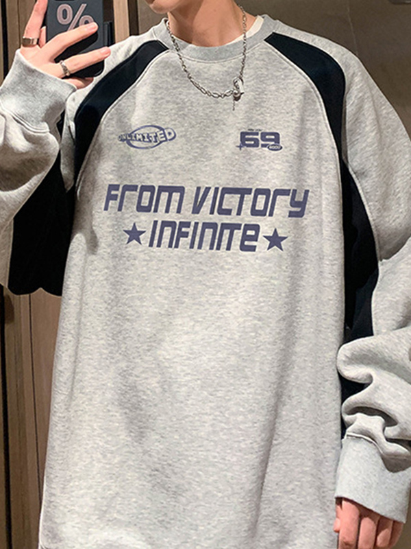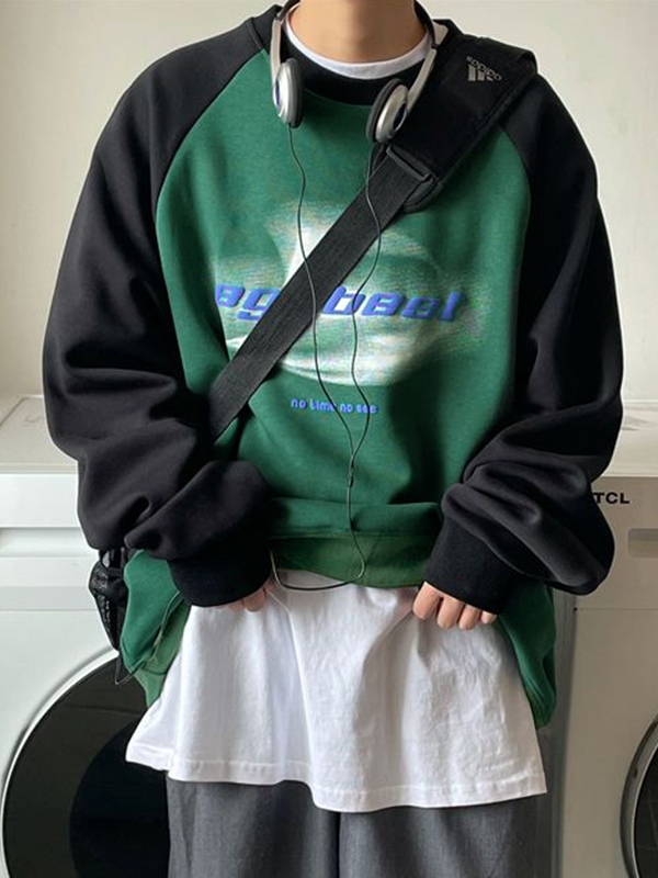 Men’s Retro Letter Print Raglan Splice Sweatshirt