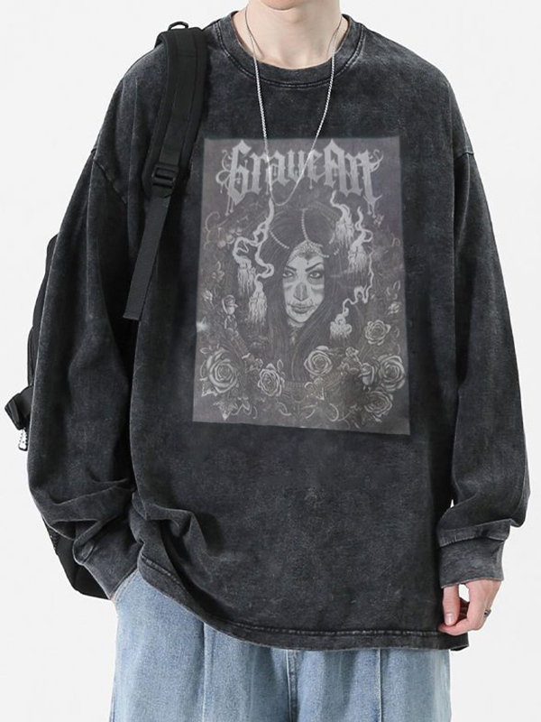 Men’s Street Blurred Portrait Print Wash Sweatshirt