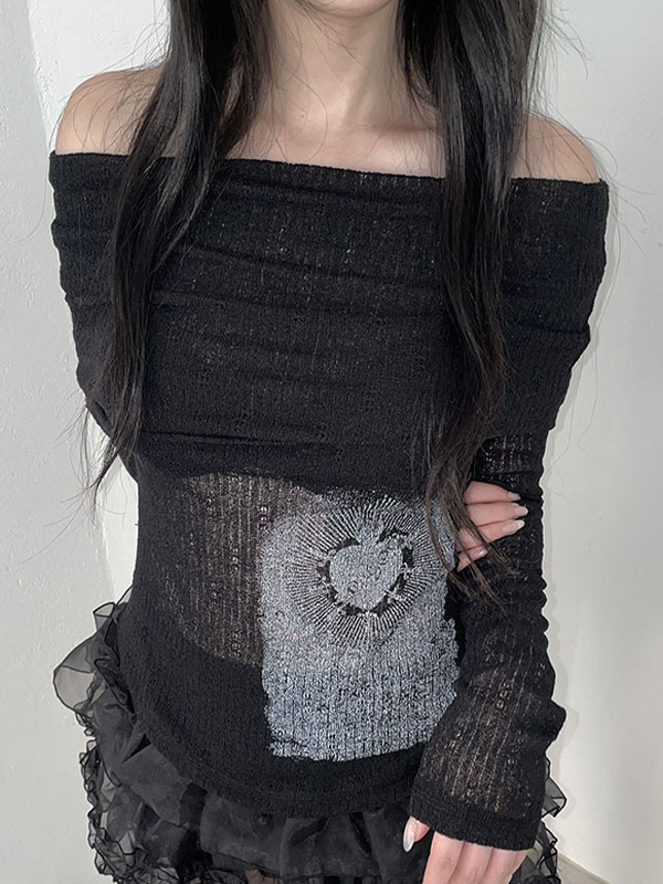 Vintage Print Long Sleeves Knits
