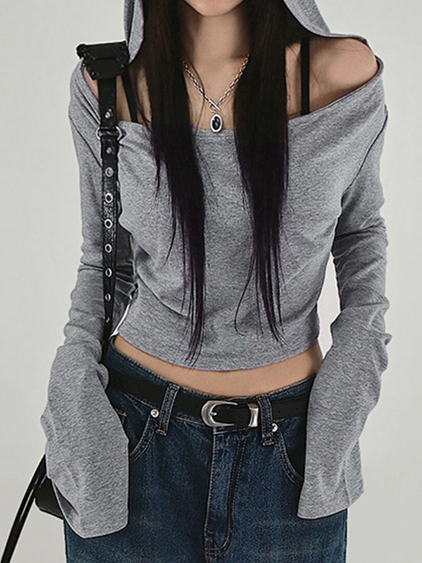 Off Shoulder Hooded Long Sleeve Tee